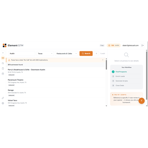 ◆ Element GTM FIND. ENRICH. CLOSE. Sales intelligence for teams selling to local businesses ◆ Limited to 10 ITEX Accounts ◆ First come, first